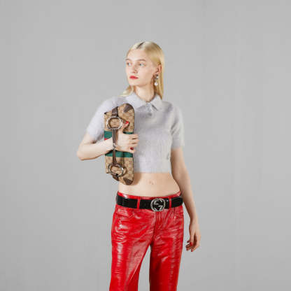 グッチはアーカイブと現代を結びつけることで、グッチの歴史との深いつながりを呼び起こしています。2000年代初頭に人気を博したマキシサイズのホースビットを飾ったこのハンドバッグは、現在もグッチならではのデザインとして知られています。2023年秋冬コレクションでは、コンテンポラリーなアプローチを取り入れ多様なカラーやテクスチャーで登場しました。